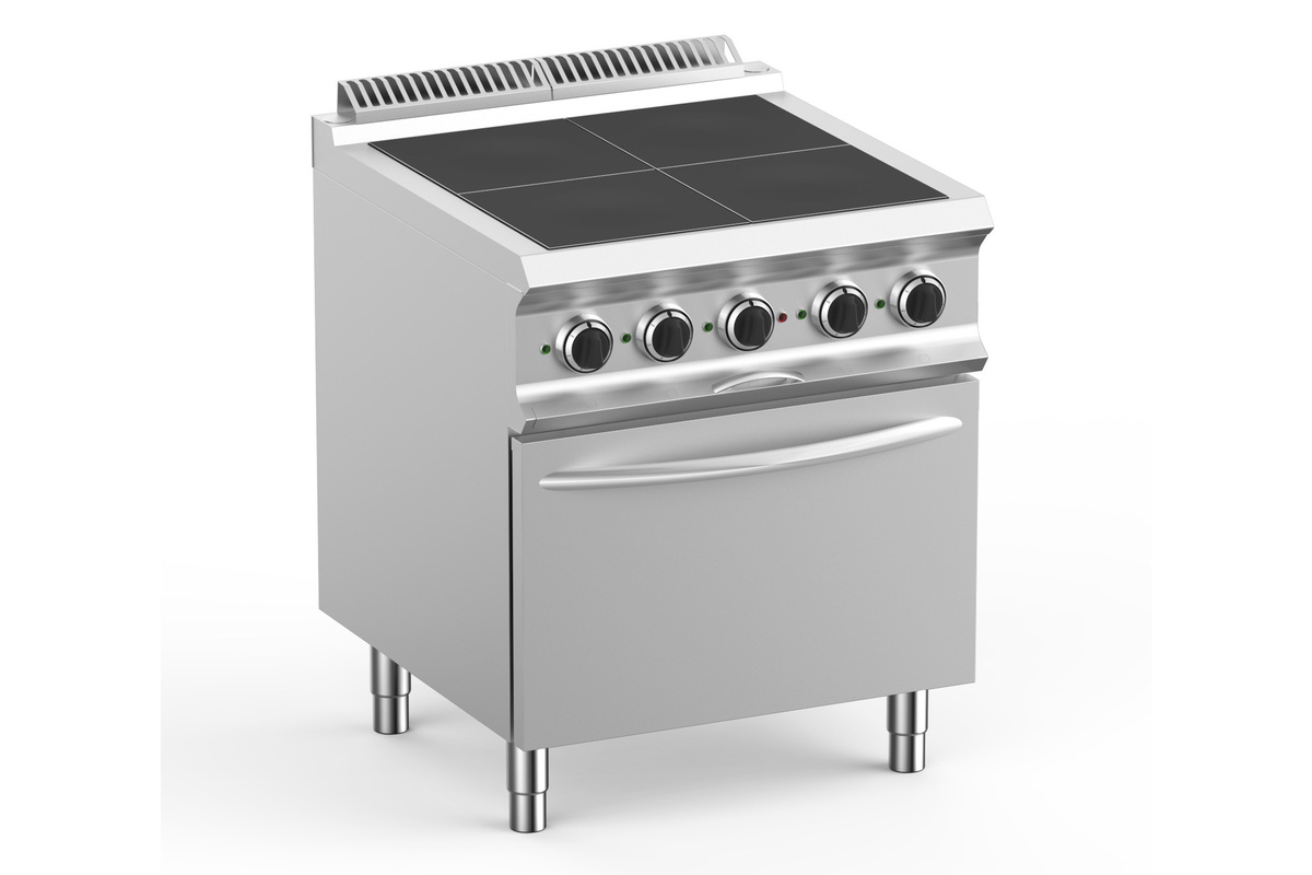 profesjonell elektrisk koker på elektrisk ventilert ovn med 4 runde plater. 6-posisjonsbryter for å regulere kraften til hver plate.