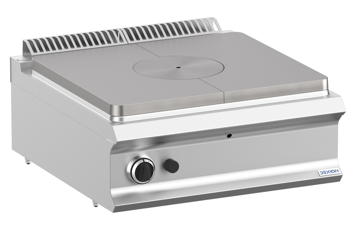 profesjonell gass solid topp. pilotflammen er beskyttet inne i hovedbrenneren. plasseringen av brennerne tillater bruk av panner opp til 40 cm i diameter. 60 % sertifisert effektivitet.
