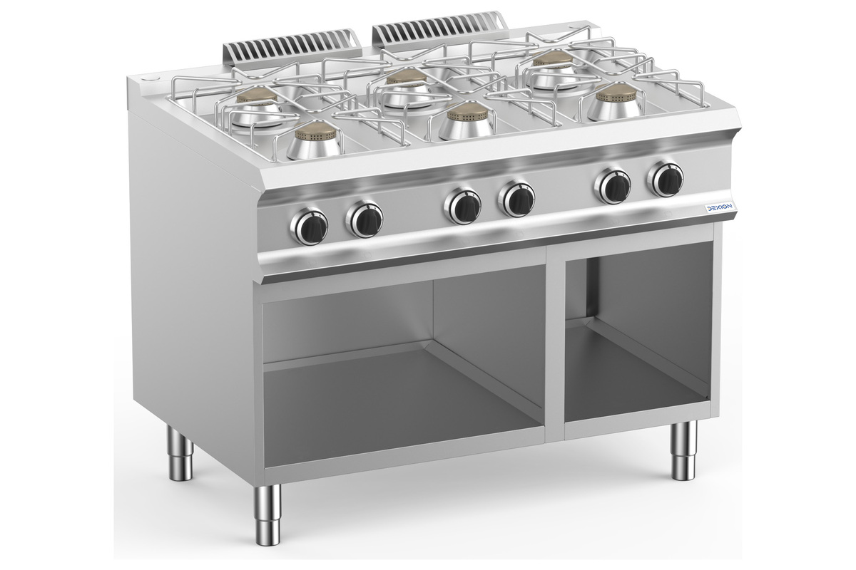 Gasskomfyr med understell, 6 bernnere